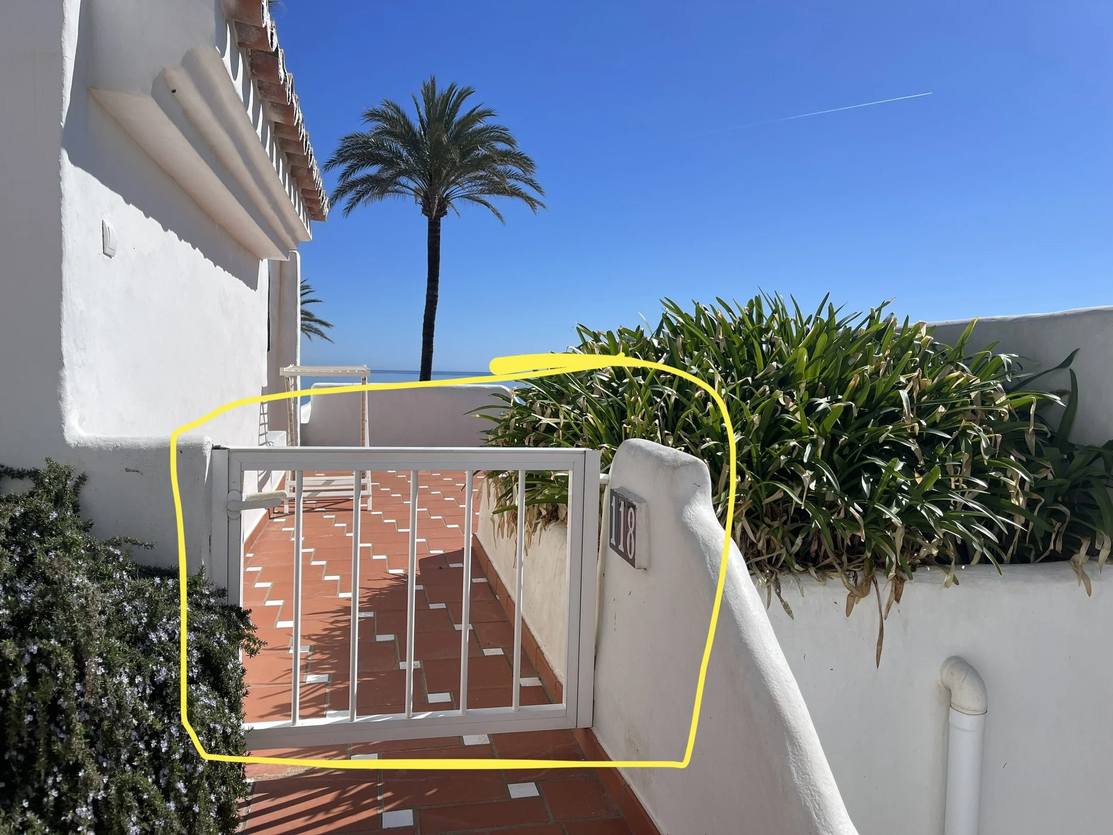 Private gate obstructing access to 6x3m² of common terrace beside apartment 118.